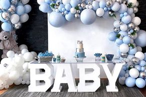 Ideal for Baby Showers and gender reveals. Table top comes in clear and white.